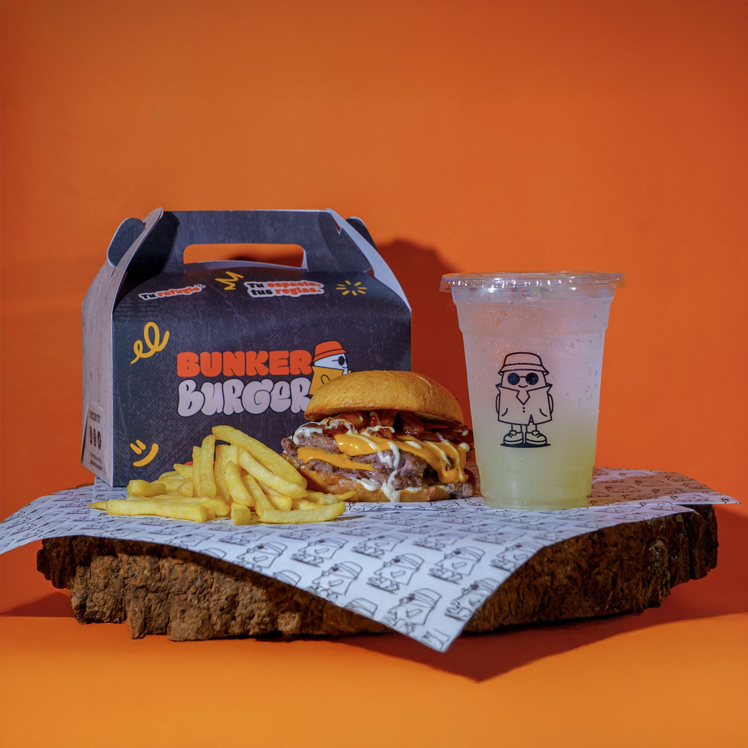 Incluye 1 hamburguesa, papas, gaseosa o limonada y una salsa a elección.